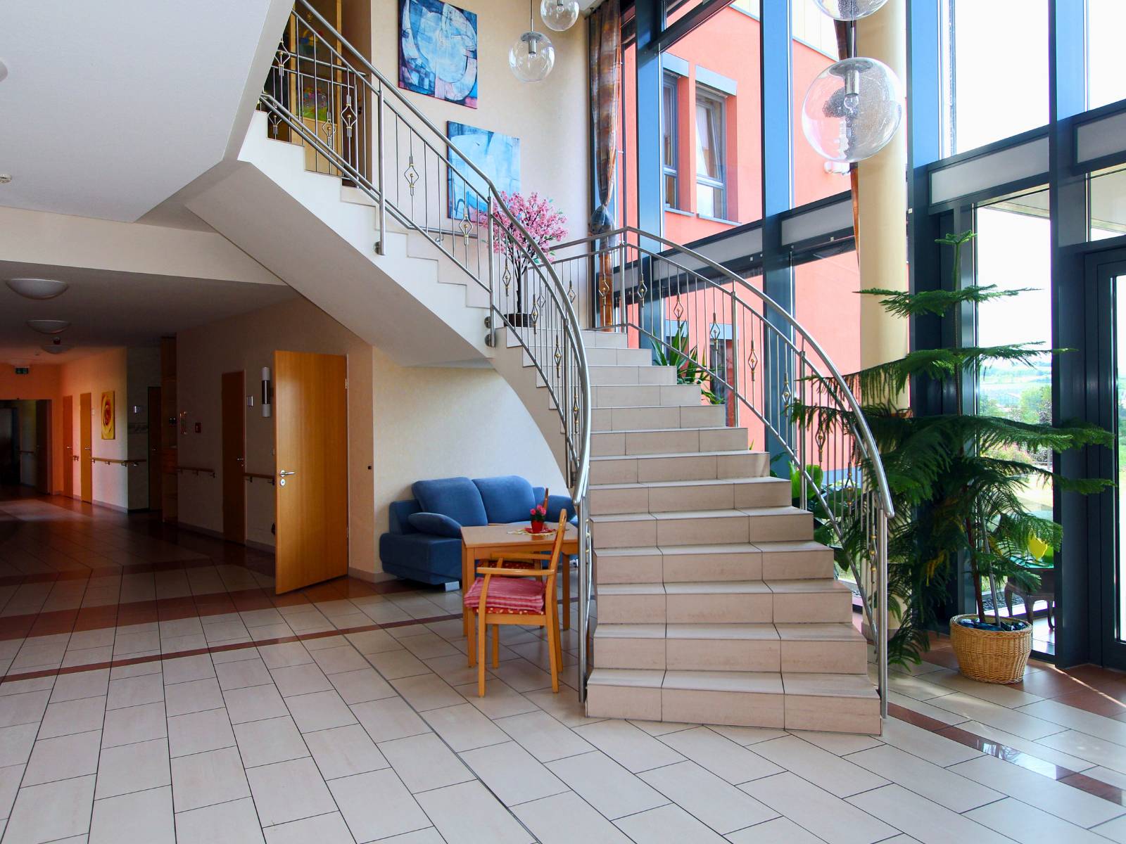 Das moderne Gebäude mit großzügigen Fensterfronten schafft lichtdurchflutete, freundliche Räume, die Offenheit, Sicherheit und Orientierung vermitteln. Schon beim Betreten des Hauses entsteht ein Gefühl von Geborgenheit, das sich durch alle Bereiche zieht – von den Gemeinschaftsräumen bis zu den individuell ausgestatteten Zimmern. Es stehen 14 Doppelzimmer und 30 Einzelzimmer zur Wahl, wobei die Räume im Erdgeschoss jeweils mit einer kleinen Terrasse ausgestattet sind. Die meisten Zimmer sind mit eigenem, barrierefreien Badezimmer ausgestattet. Einige Einzelzimmer im Erdgeschoss teilen sich jeweils einen Flur und ein Badezimmer.